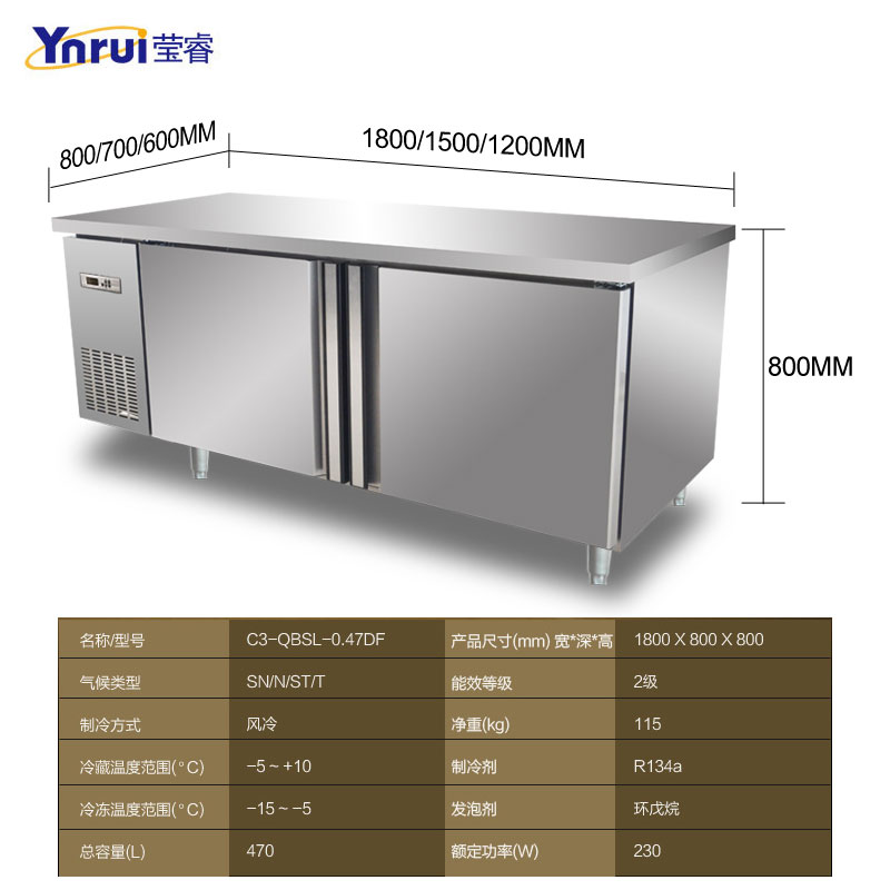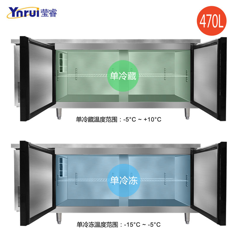 The temperature of the counter refrigerator is generally 0°C-10°C, suitable for beverages, vegetables, fruits, and keeping food fresh. The temperature of the counter freezer is -15°C-0° C, suitable for meat,sea food , and keeps food from deteriorating for a long time
