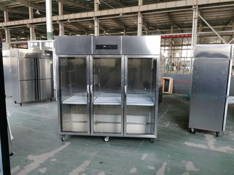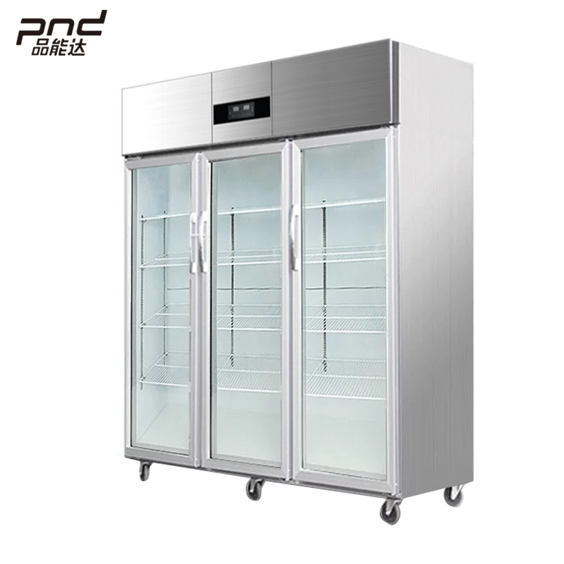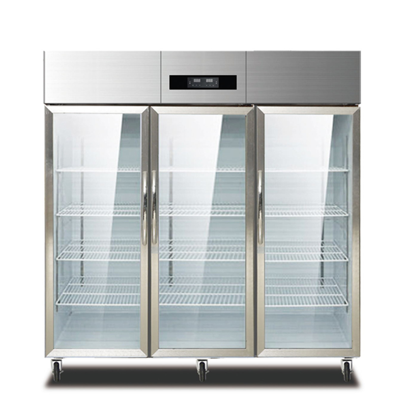 A 3-glass door display showcase can have various commercial applications, depending on the type of product that needs to be displayed. Some common uses of a 3-glass door display showcase include: 1. Beverage display: This type of showcase is often used in supermarkets, convenience stores, or gas stations to showcase cold beverages, such as sodas, juices, energy drinks, and bottled water. 2. Bakery display: A 3-glass door display showcase can be used to showcase freshly baked goods, such as bread, cakes, cookies, pastries, and other baked treats. 3. Deli or meat display: In grocery stores or specialty meat shops, a 3-glass door display showcase can be used to showcase pre-packaged or sliced deli meats, cheeses, and other cold cuts. 4. Convenience food display: A 3-glass door display showcase can also be used to showcase ready-to-eat meals, such as salads, sandwiches, or pre-packaged meals that require refrigeration. In summary, a 3-glass door display showcase is a versatile commercial refrigeration unit that can be used to showcase a variety of perishable products requiring refrigeration while also attracting customer attention to the product on display