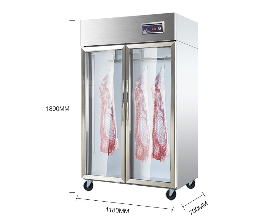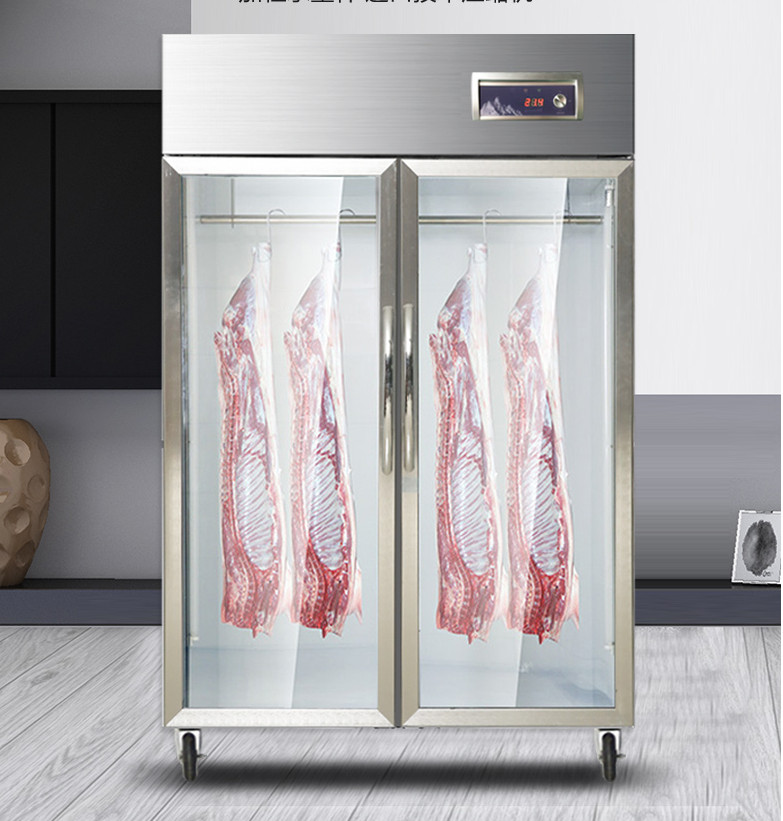 A meat hanging fridge can be used in a variety of settings such as restaurant , butcher shop, supermarkets, and delis to showcase meat products