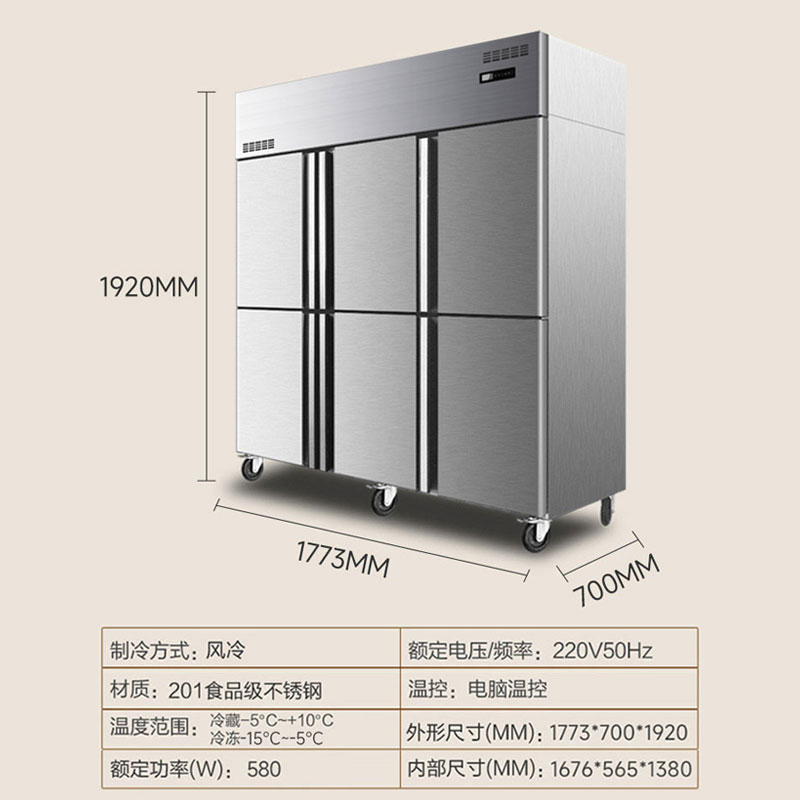 This is 1300L air cooling 6 door freezer.If you own a small catering company or a large restaurant, you will know that having the right refrigeration equipment in the commercial kitchen to store significant amounts of food and drink at the optimum temperatures is a vital and necessary ingredient to a successful and efficient business. We stock a wide range of commercial refrigeration equipment for meat and fish.