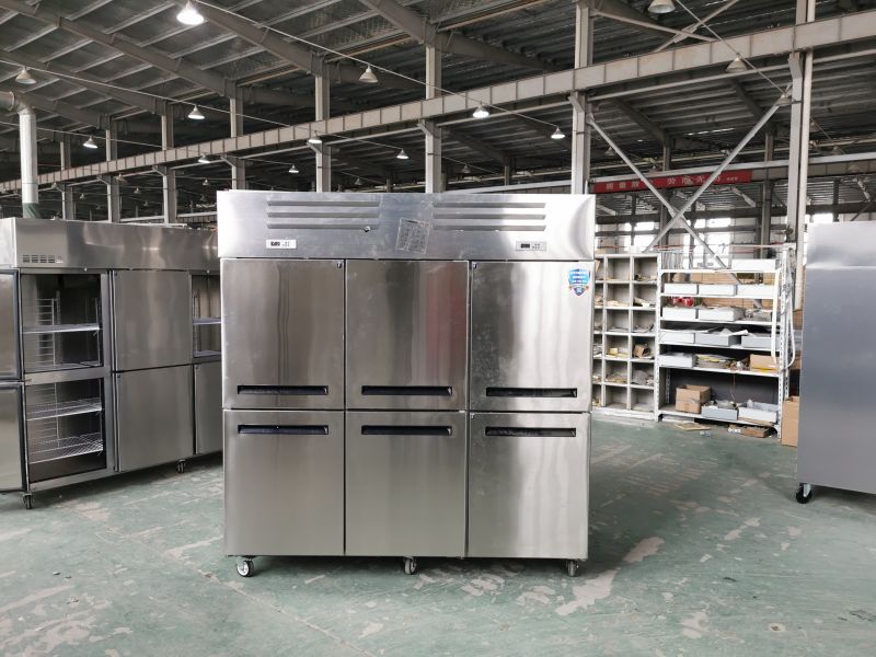 The air cooling 6 door refrigerator is a great addition to any commercial kitchen or restaurant. Its air cooling system ensures even temperature distribution, which helps to keep your food items fresh for a longer period. Additionally, its digital temperature control and LED display make it easy to monitor and maintain the temperature inside the refrigerator. And the elegant stainless-steel body with smooth edges not only enhances the appearance of your kitchen or restaurant but also makes it easy to clean and maintain.