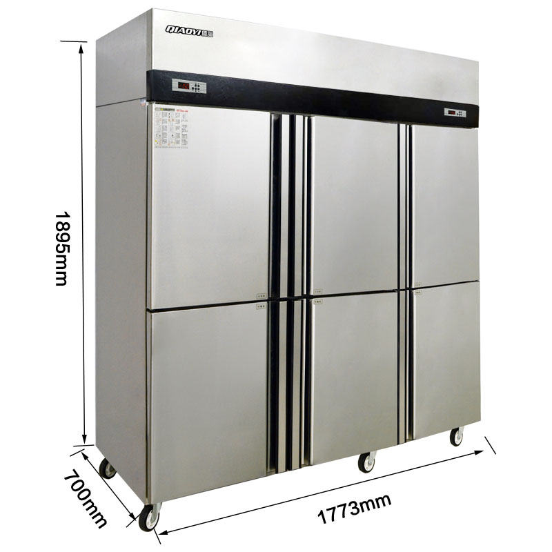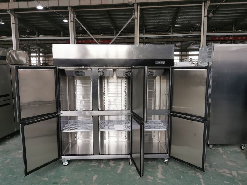 The air cooling 6 door refrigerator is a great addition to any commercial kitchen or restaurant. Its air cooling system ensures even temperature distribution, which helps to keep your food items fresh for a longer period. Additionally, its digital temperature control and LED display make it easy to monitor and maintain the temperature inside the refrigerator. And the elegant stainless-steel body with smooth edges not only enhances the appearance of your kitchen or restaurant but also makes it easy to clean and maintain.