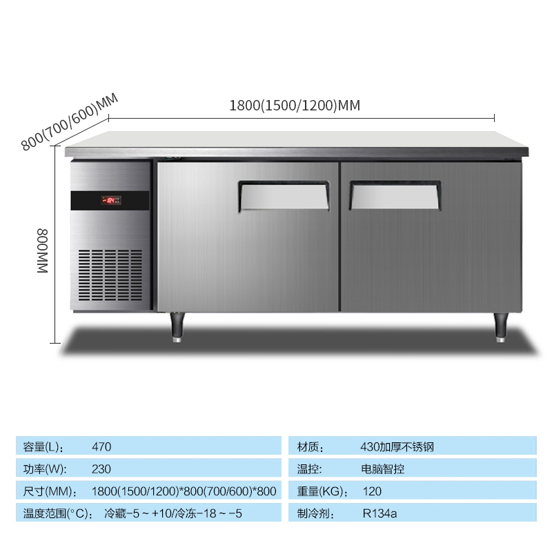 The temperature of the counter refrigerator is generally 0°C-10°C, suitable for beverages, vegetables, fruits, and keeping food fresh. The temperature of the counter freezer is -15°C-0° C, suitable for meat,sea food , and keeps food from deteriorating for a long time