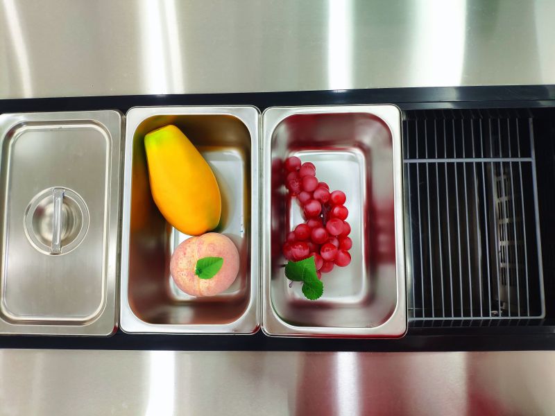 The salad bar fridge counter is great for keeping salads cool and crisp until serving time. This refrigerator features a counter with sections for salads and seasonings of various types.it is the right fit for your Restaurant, Cafe, or Commercial Kitchen. keep foods refrigerated or frozen at the optimum temperatures for a long period of time.