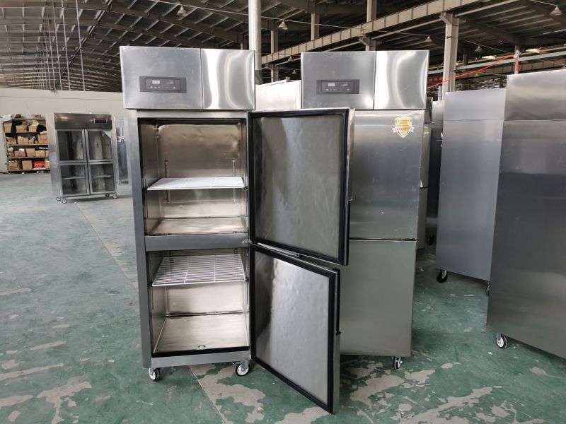 The is a upright double door fridge used in kitchen, Both the interior and exterior are made from high grade 201 stainless steel .Featuring a static cooling system a self closing door and casters fitted as standard. It is very necessary refrigeration equipment for restaurant. It is a compact and efficient way to refrigerate large quantities of food easily.